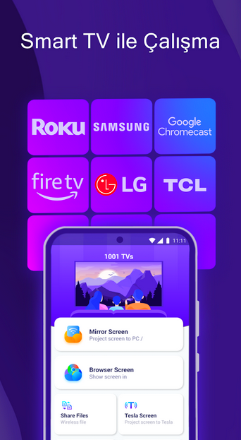 Ekran Yansıtma – 1001 TVs uygulaması, mobil cihazınızın ekranını kablosuz olarak büyük bir ekrana yansıtarak daha geniş bir deneyim sunar. Kolay kullanımı sayesinde çeşitli ekranları yansıtabilirsiniz.