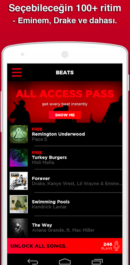 - Uygulama, rap performansınızı otomatik olarak kaydeder ve sizinle paylaşmanız için kaydedilen rap müziğinize eşlik eden video veya ses dosyası oluşturur.