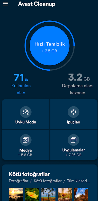 Uygulama, cihazınızda biriken gereksiz dosyaları tespit etmek için derinlemesine bir tarama yapar. Bu dosyalar arasında önbellek verileri, geçici dosyalar, bozuk resimler ve videolar, kullanılmayan uygulama artıkları ve daha fazlası bulunabilir. Bu gereksiz dosyalar zamanla cihazınızın performansını olumsuz etkileyebilir ve depolama alanını doldurabilir. Avast Cleanup, bu dosyaları güvenli bir şekilde temizler ve cihazınızın daha hızlı çalışmasını sağlar.