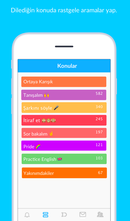 5. Ana sayfada, bir sohbet odası seçin veya belirli bir konuda sohbet etmek istediğiniz için bir etiket arayın. Uygulama, ortak ilgi alanlarına göre eşleşen diğer kullanıcılarla sizi eşleştirecektir.