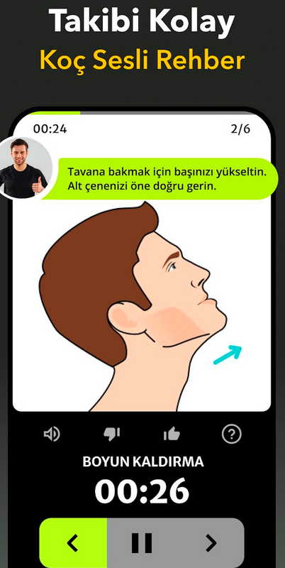 Yüz yogası ve çene egzersizleri, çene çizgisini düzeltebilir, çene ve boyun bölgesindeki kasları güçlendirebilir ve yüz hatlarını sıkılaştırabilir. Uygulama, bu egzersizleri adım adım göstererek, kullanıcılara nasıl yapacaklarını detaylı bir şekilde anlatır ve görsel rehberlik sunar.