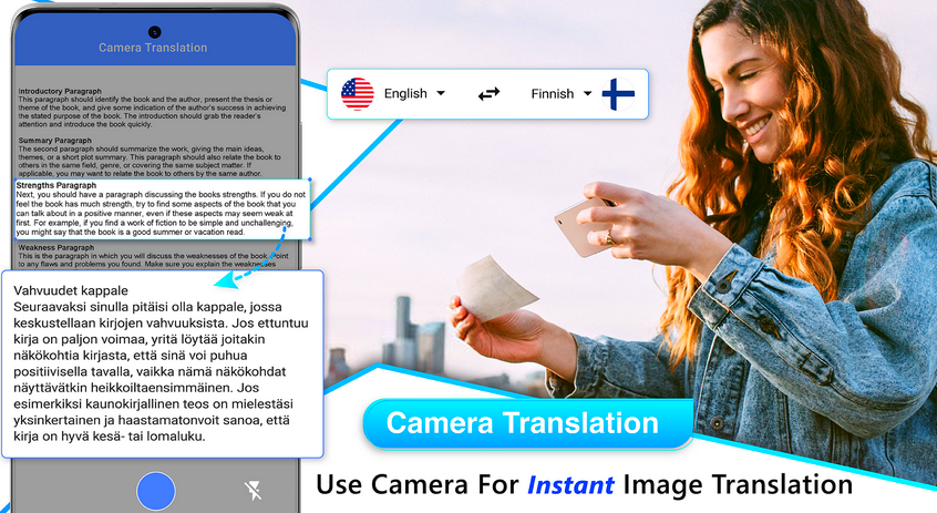 - Kamera çevirisi: Uygulama, kamerayı kullanarak metinleri çevirebilir.