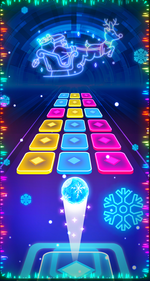 - Renklere uyum sağlayın: Oyuncu karakterini, renkli platformlardan oluşan bir yol boyunca ilerletmek için ekrana dokunarak atlama hareketi yapın. Renkler, müzik ritmine uyumlu olarak değişecektir. Doğru zamanda doğru renge dokunarak karakteri bir sonraki platforma atlatmaya çalışın.