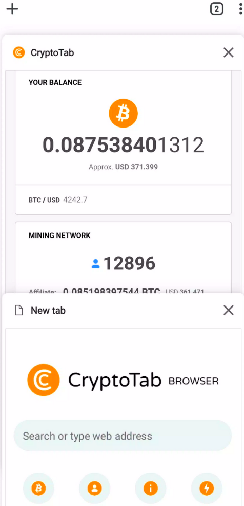 - Bitcoin madenciliği yapmak için CryptoTab Browser’ın entegre madencilik özelliğinden yararlanın. Tarayıcının sağ üst köşesindeki CryptoTab simgesini tıklayarak madencilik paneline erişebilirsiniz. Madencilik araçları ve istatistikler bu panelde bulunur. Madencilik işlemi otomatik olarak başlar ve tarayıcıyı kullandıkça pasif bir şekilde Bitcoin kazanabilirsiniz.