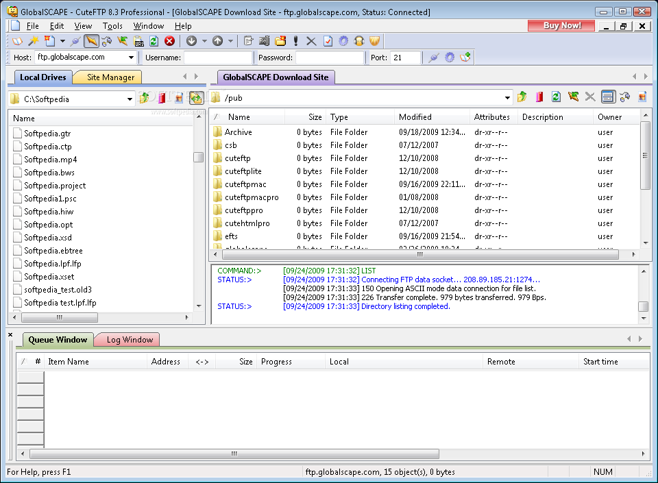 • Cute FTP tam proffossionel ve tam otomatik bir transfer takvimi izlemektedir.