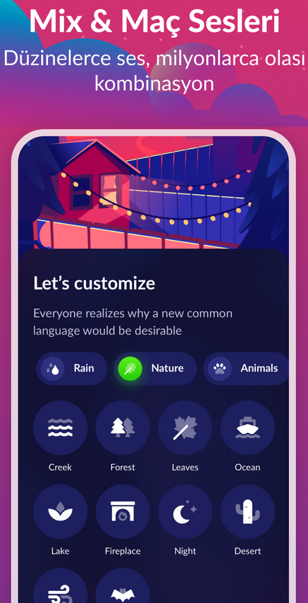 Uygulama genellikle çeşitli uyku müzikleri, doğa sesleri ve beyaz gürültü gibi sesler içerir. Bu sesler, zihni sakinleştirmek, zihinsel gerginliği azaltmak ve uyku sürecini kolaylaştırmak için kullanılır. Örneğin, doğa sesleri arasında kuş cıvıltıları, yağmur yağışı, dalga sesleri, orman sesleri gibi sesler bulunabilir. Bu sesler, kullanıcıların rahatlamasına yardımcı olarak uyku düzenini düzene sokabilir.