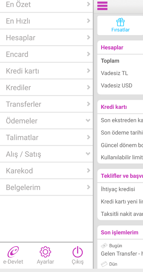 - İşlemleri seçin: Uygulama ana sayfasından yapmak istediğiniz işlemi seçin. Örneğin, para transferi yapmak için “Para Transferi” seçeneğini seçin.