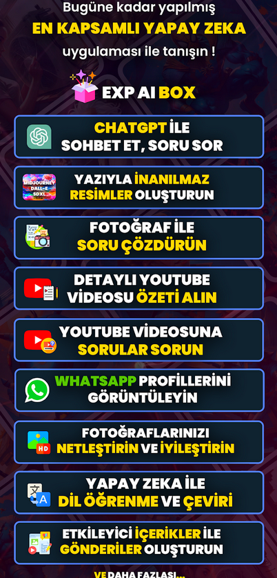 EXP AI Yapay Zeka Asistanı Özellikler: