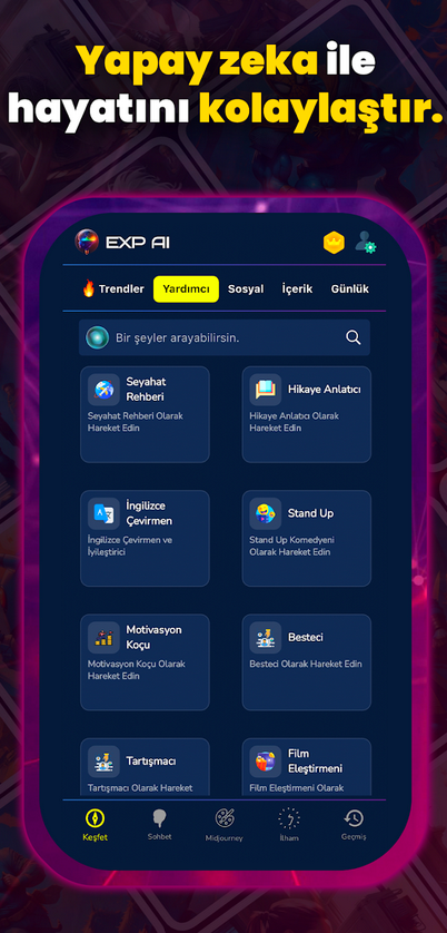 EXP AI Yapay Zeka Asistanı Kullanım Alanları: