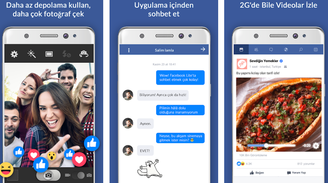Depolama alanında az yer kaplayan, hızlı indirilebilen, hızlı fotoğraf ve video yükleyebilen Facebook Lite APK dosyasını Android telefon ve tabletlerinize ücretsiz indirerek arkadaşlarınızı ekleyebilir, mesaj gönderebilir, yorum ve beğeni yapabilirsiniz.