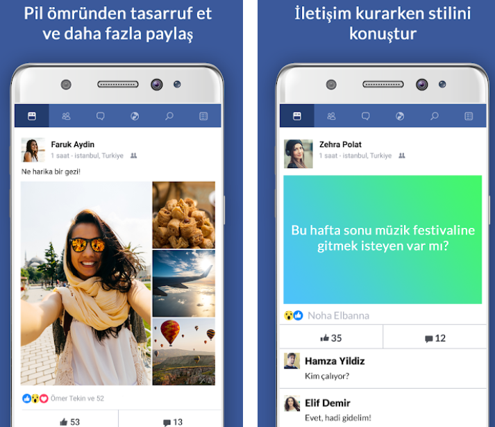Facebook Lite Android indir : https://play.google.com/store/apps/details?id=com.facebook.lite&hl=tr&gl=tr