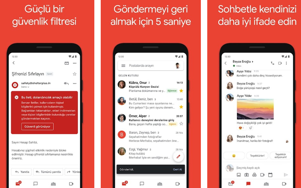 Google Gmail hızlı ara yüzü sayesinde ön plana çıkan uygulama oldukça kullanışlıdır. Zaman kaybetmeden bir arada görebileceğiniz mailleriniz sayesinde zaman kaybetmezsiniz. Ayrıca bildirimleri almanız mümkündür. Bu sayede sürekli e-postalarınızı takip etmeniz gerekmez. Üstelik internetiniz olmasa dahi daha önceden gelen ve senkronize olmuş postalarınıza ulaşabilirsiniz.