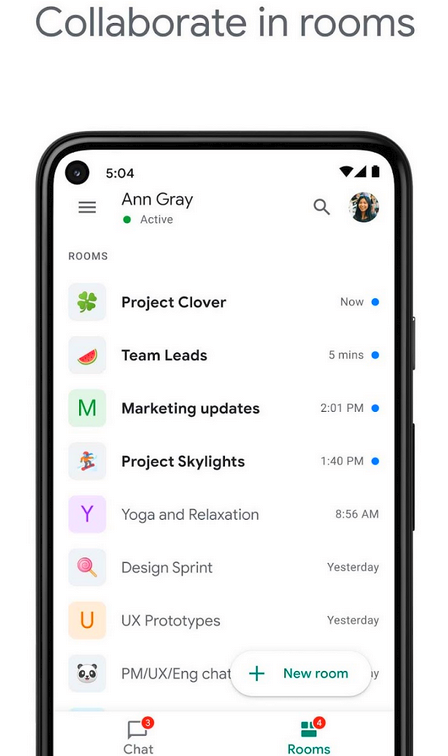 3. Kişiler ve odalar: Google Chat APK Android uygulamasına girdiğinizde, kişilerinizi ve oluşturulan odaları göreceksiniz. Odalar, belirli bir projeye, ekipteki kişilere veya konuya odaklanan gruplar olabilir. Odaları oluşturmak veya mevcut odalara katılmak için “Yeni oda oluştur” veya “Odaya katıl” gibi seçeneklere tıklayın.