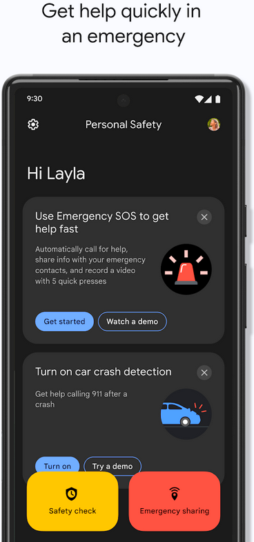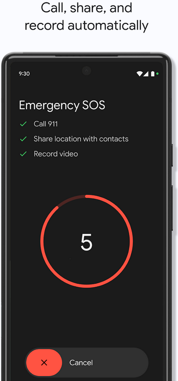 Google Kişisel Güvenlik uygulaması, şunları içeren özellikleri içerir: