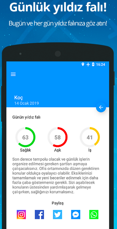 - Günlük Burç Yorumlarını Görüntüleyin: Burcunuzu seçtikten sonra, uygulama size günlük burç yorumlarını sunacaktır. Bu yorumlar, astrologlar tarafından güncellenen ve burcunuzun günlük enerjisini, şansınızı, aşk hayatınızı, iş ilişkilerinizi ve genel olarak yaşamınızı etkileyen faktörleri içerir.