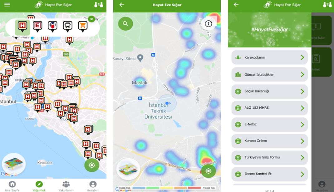Bölgenizdeki covid yoğunluğunu görebileceğiniz Hayat Eve Sığar uygulaması sayesinde gideceğiniz noktalardaki hastalık riskini inceleyebilirsiniz. Bu sayede plan yaparken izleyeceğiniz yolları daha sağlıklı bir şekilde izlemeniz de mümkündür.