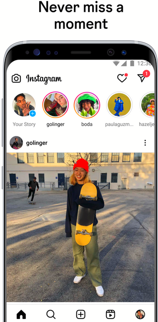 - Gönderileri Paylaşma: Ana sayfada, fotoğraf paylaşma düğmesine tıklayarak yeni bir gönderi paylaşabilirsiniz. Galerinizden veya doğrudan kameradan bir fotoğraf veya video seçebilir ve düzenlemek için filtrelere veya metin eklemeye erişebilirsiniz.