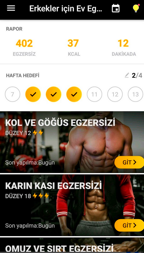 Erkekler için ev egzersizleri Apk Android uygulaması, düzenli bir program dahilinde yapıldığında güç ve dayanıklılığı artırabilir, vücut gelişimini artırabilir ve kas yapabilirsiniz.
