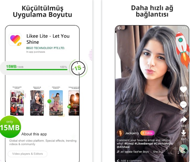 Likee Lite – Let You Shine Android indir : https://play.google.com/store/apps/details?id=video.like.lite&referrer=utm_source%3Dindirvip.com