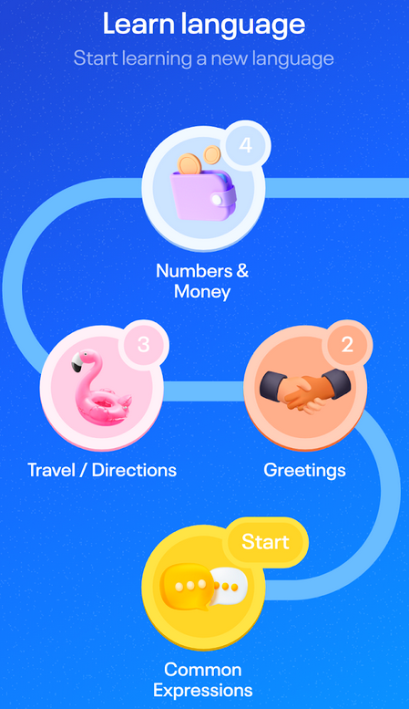 Uygulama, kullanıcıların kendi hızlarında ve tercih ettikleri dillerde öğrenme imkanı sağlar. Kullanıcılar, başlangıç seviyesinden ileri seviyeye kadar çeşitli dil seçeneklerinde (İngilizce, İspanyolca, Fransızca, Almanca, vb.) öğrenme süreçlerine başlayabilirler. Her dil için özel olarak hazırlanmış dersler ve etkileşimli egzersizlerle, kelime dağarcığınızı geliştirmenize ve dilbilgisi becerilerinizi pekiştirmenize olanak tanır.