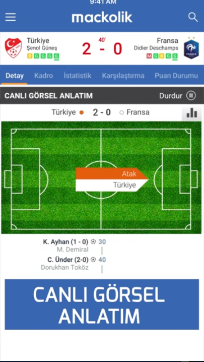 Canlı maç skoru, maç analizleri, istatistikleri, canlı maç sonuçları ve görsel maç anlatımlarının bulunduğu Maçkolik uygulamasıdır. Mackolik canlı sonuçlar APK dosyasını Android telefon ve tabletlerinize ücretsiz indirip takip ettiğiniz klubün puan tablosu, fikstür ve canlı maç sonuçlarını takip edebilirsiniz. Oyuncu sayfalarını inleme fırsatı sunan Mackolik uygulaması üzerinden canlı maç anlatımları, takımları karşılaştırma ve maçların detaylı istatistiklerini görüntüleme desteği sunmaktadır.