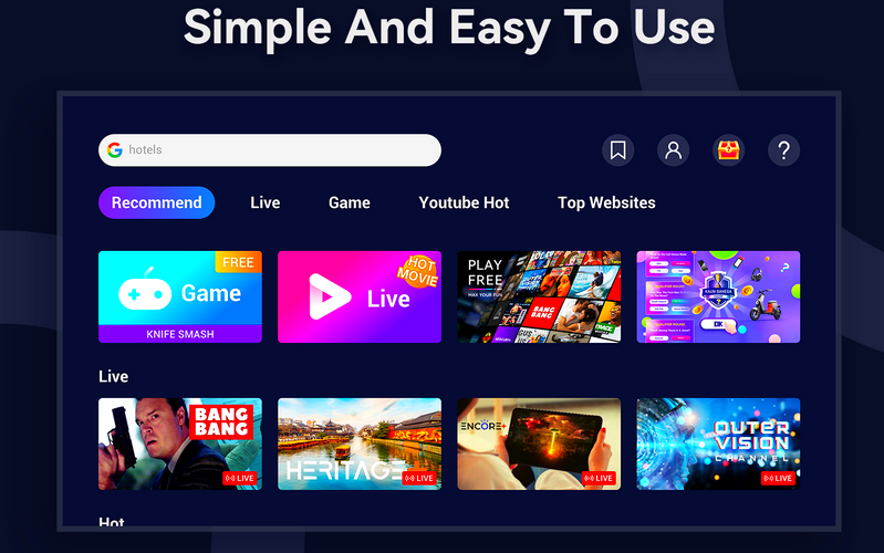 Open Browser TV Web Browser APK, akıllı TV’leri internet merkezlerine dönüştürmek isteyen kullanıcılar için vazgeçilmez bir araçtır. Sorunsuz tarama, özelleştirilebilir özellikler ve çeşitli giriş seçenekleriyle kullanıcıların webde gezinmelerini kolay, keyifli ve verimli hale getirir.