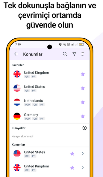 - Çeşitli Sunucu Konumları: Dünya çapında farklı sunucu konumlarına erişim sağlar, böylece coğrafi kısıtlamaları aşabilir veya belirli içeriklere erişebilirsiniz.