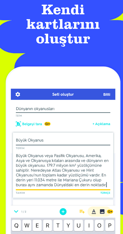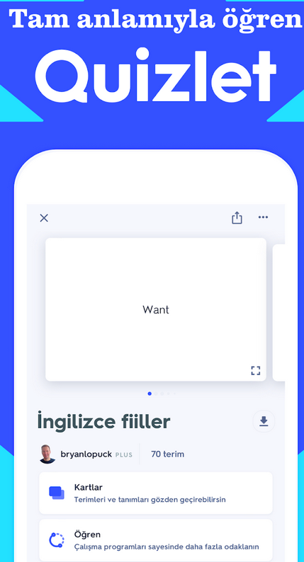 Quizlet APK indir, öğrencilerin ve öğrenme meraklılarının ders materyallerini, notları ve kavramları öğrenmelerini destekleyen bir mobil uygulamadır. Yapay Zeka (YZ) ile desteklenen özellikleri, kullanıcıların daha etkili bir şekilde öğrenmelerine yardımcı olur.