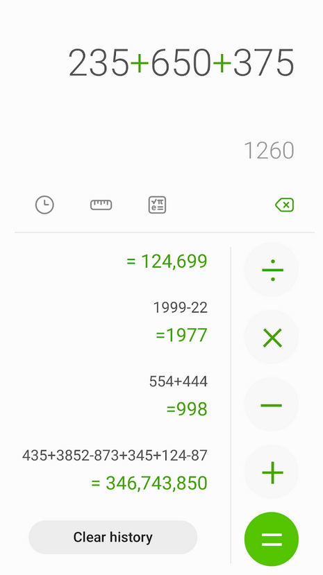 Samsung Calculator APK indir, Samsung Electronics tarafından geliştirilen ve Samsung akıllı telefonlarında ön yüklü olarak bulunan bir hesap makinesi uygulamasıdır. Bu uygulama, kullanıcıların çeşitli matematiksel işlemleri hızlı ve verimli bir şekilde gerçekleştirmelerini sağlar. Temel dört işlem (toplama, çıkarma, çarpma, bölme) gibi basit matematiksel işlemlerden, karekök alma, üs alma, trigonometrik fonksiyonlar gibi daha gelişmiş işlemlere kadar geniş bir yelpazede fonksiyonlar sunar.
