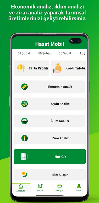 - Uygulamada yer alan menülerden dilediğiniz işlemi seçin. Örneğin, hasat işlemleri için “Hasat İşlemleri” menüsüne, finansal işlemler için “Finansal İşlemler” menüsüne girebilirsiniz.