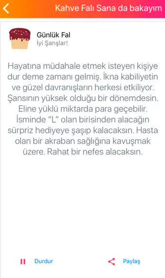 - Sesli yorumları dinleyin: Analiz tamamlandığında, uygulama size fal yorumlarını sesli olarak sunacaktır. Kulaklıklarınızı takın veya hoparlörleri açın ve yorumları dikkatlice dinleyin. Yorumlar, kahve fincanındaki sembollerin anlamlarını, gelecekle ilgili ipuçlarını ve yorumlayıcının açıklamalarını içerebilir.