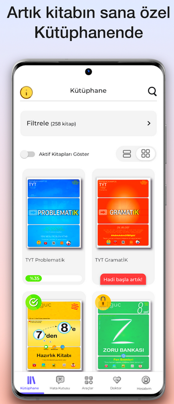 - Ana sayfada, farklı kategorilerdeki kitapları keşfetmek için seçenekler arasında gezinin. Kitapların isimlerini, yazarlarını ve kitap kapaklarını görebilirsiniz.