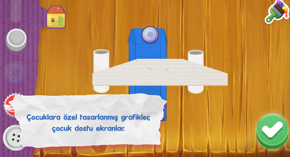 Oyunun ilk seviyeleri daha çok öğretici niteliktedir. Özellikle çocukların anlayacağı şekilde iyice detaylandırılır. Her seviyede ise yeni tasarımlar ve yeni malzemeler mevcuttur. Bölüm tekrar oynandığı zaman oyun tasarımı tamamen değiştirile bilir. Aynı zamanda oyunun ara yüzü çocuklar için kolay bir şekilde tasarlanmıştır.