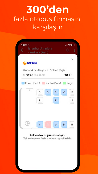 - Uygun seçenekleri gördüğünüzde, tarih, saat, fiyat, kalkış ve varış noktaları gibi sefer detaylarını inceleyebilirsiniz.