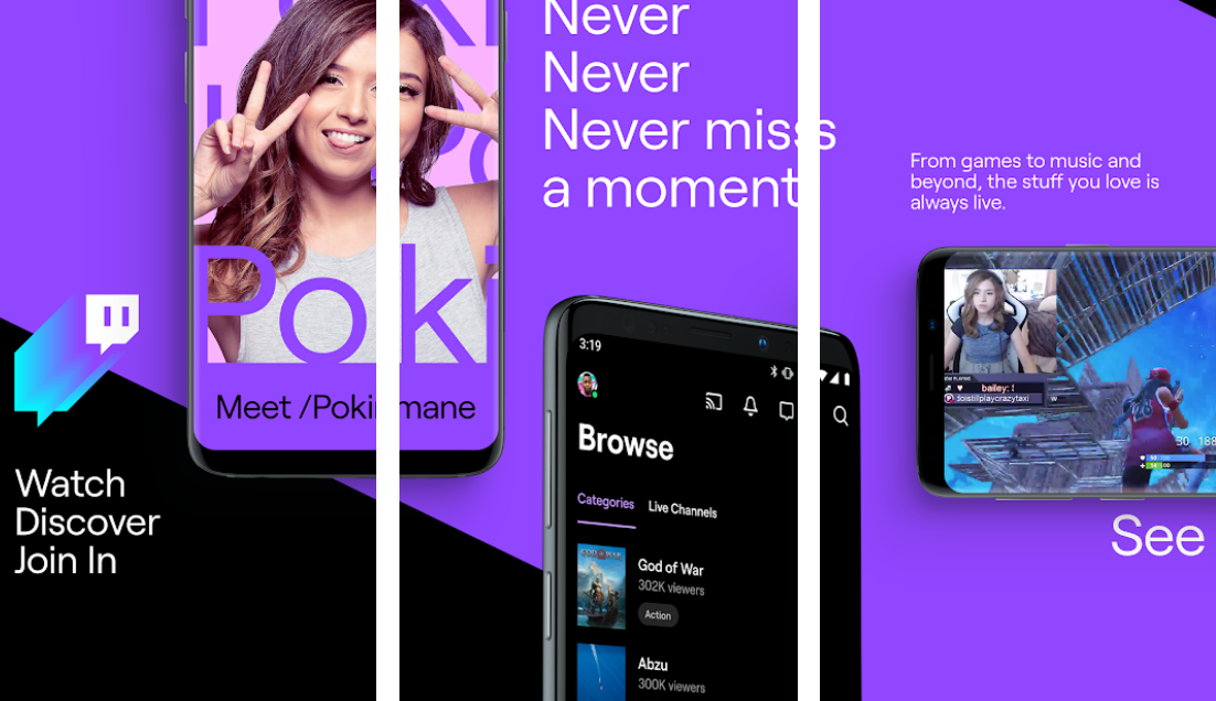 Twitch APK indir, canlı yayın çok oyunculu oyunlar Esporlar ve MMO RPG, strateji ve FPS oyun yayınlarını Twitch indirip canlı yayınlar ve oyuncu sohbetlerine katılabilirsiniz.