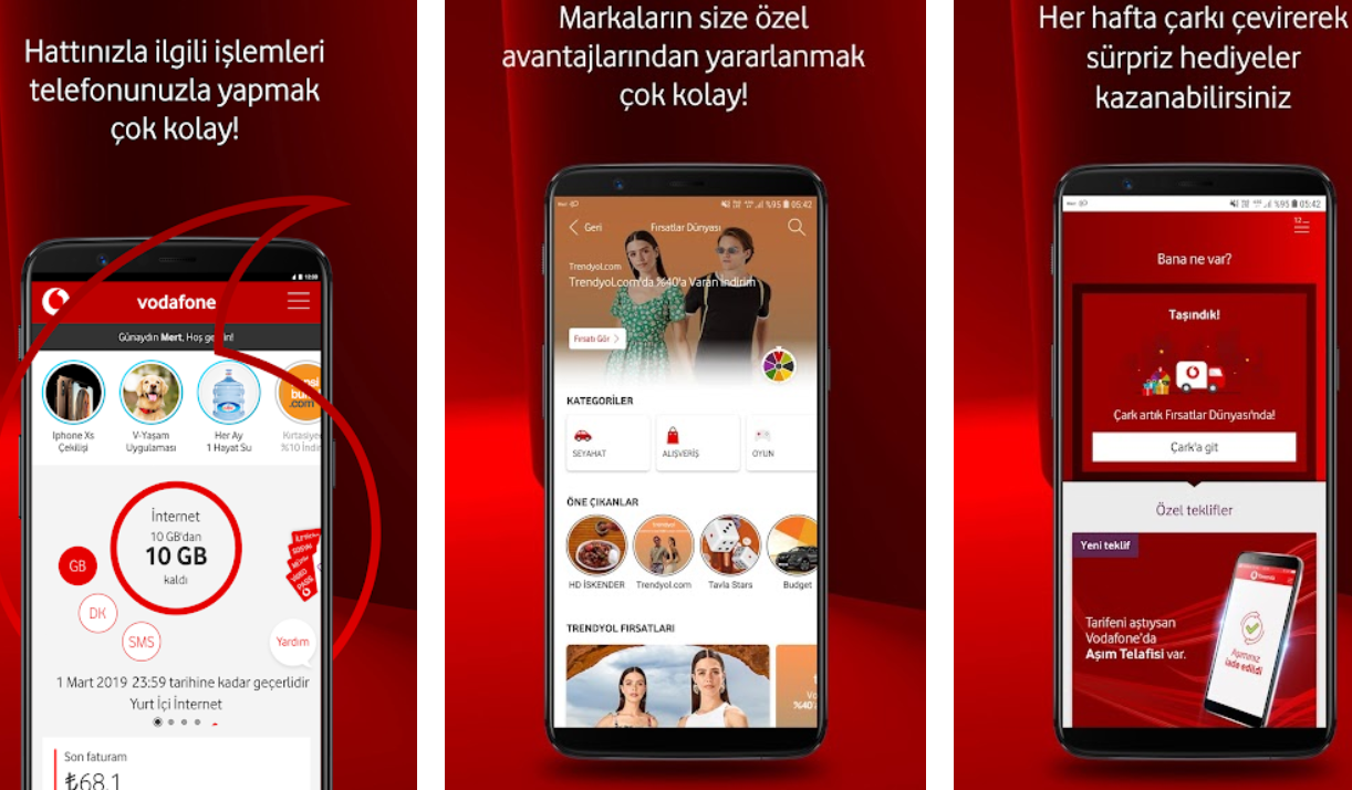 Vodafone’da size özel kampanyaları, TL yükleme, salla kazan, pazartesi bana ne var, tarife ek özel tarifeler ve diğer hediye ve kampanyaları takip edebileceğiniz uygulamadır.