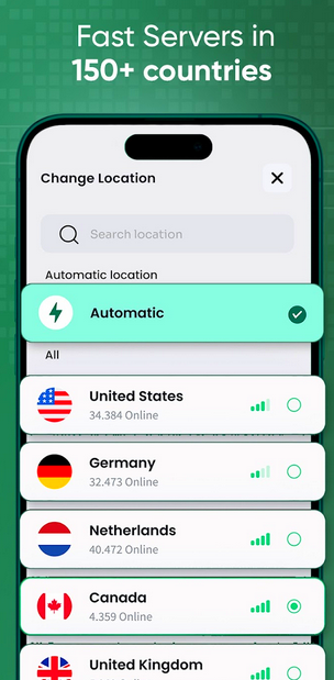 3. Sunucu Seçimi: İstediğiniz konumu seçerek bir sunucuya bağlanın. Genellikle ülke veya şehir bazında seçim yapabilirsiniz.