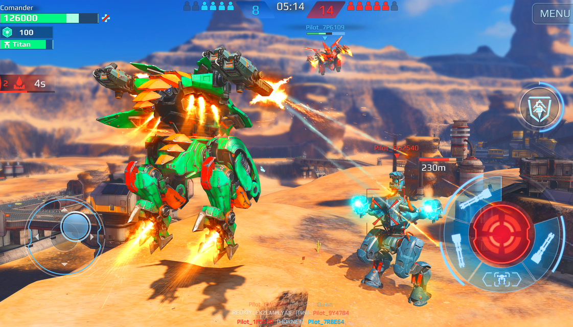 - Oyuncular, dev robotları kontrol ederek diğer oyuncularla savaşırlar.