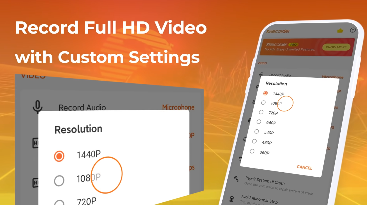 Ekran Kaydedici, Ekran Video Kaydedici – Xrecorder APK indir, Android telefon ve tabletlerinizde Xrecorder ile 1440P çözünürlükte HD kalitede ekran videosu kaydetmenizi sağlar.