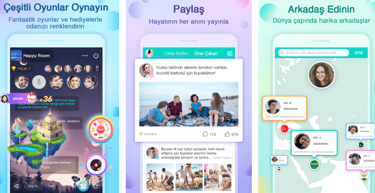 Yalla – Sesli sohbet uygulaması en popüler ve en çok sevilen canlı grup odaları ve sesli sohbet ederek oyun oynamanızı sağlayan iletişim uygulamasıdır. Yalla APK Android telefon ve tabletlerinize ücretsiz olarak 66 MB dosyasını indirip kurulumu tamamlayarak kullanmaya başlayabilirsiniz.