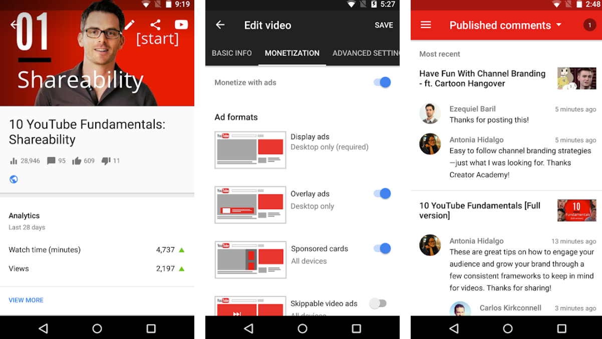 YouTube Studio Android indir: https://play.google.com/store/apps/details?id=com.google.android.apps.youtube.creator&referrer=utm_source%3Dindirvip.com